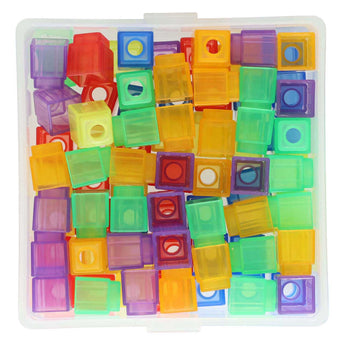 Transparante Gekleurde Telblokjes - 90stuks laten kinderen tellen, sorteren en bouwen terwijl ze spelenderwijs inzicht krijgen in getallen en patronen. De doorzichtige blokjes schitteren op een (zon)raam of lichttafel en maken rekenen zichtbaar. Perfect voor vrij spel én gerichte activiteiten rond tellen, patronen en fijne motoriek.