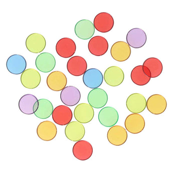 Gekleurde Transparante Fiches – 100 stuks brengen kleur, spel en leermogelijkheden samen in één veelzijdige set. Deze heldere fiches zijn ideaal voor sorteer- en telspelletjes, creatieve patronen en sensorische activiteiten. Ze zijn klein, handzaam en bijzonder geschikt om kinderen op een speelse manier te laten ontdekken, leren en ervaren.